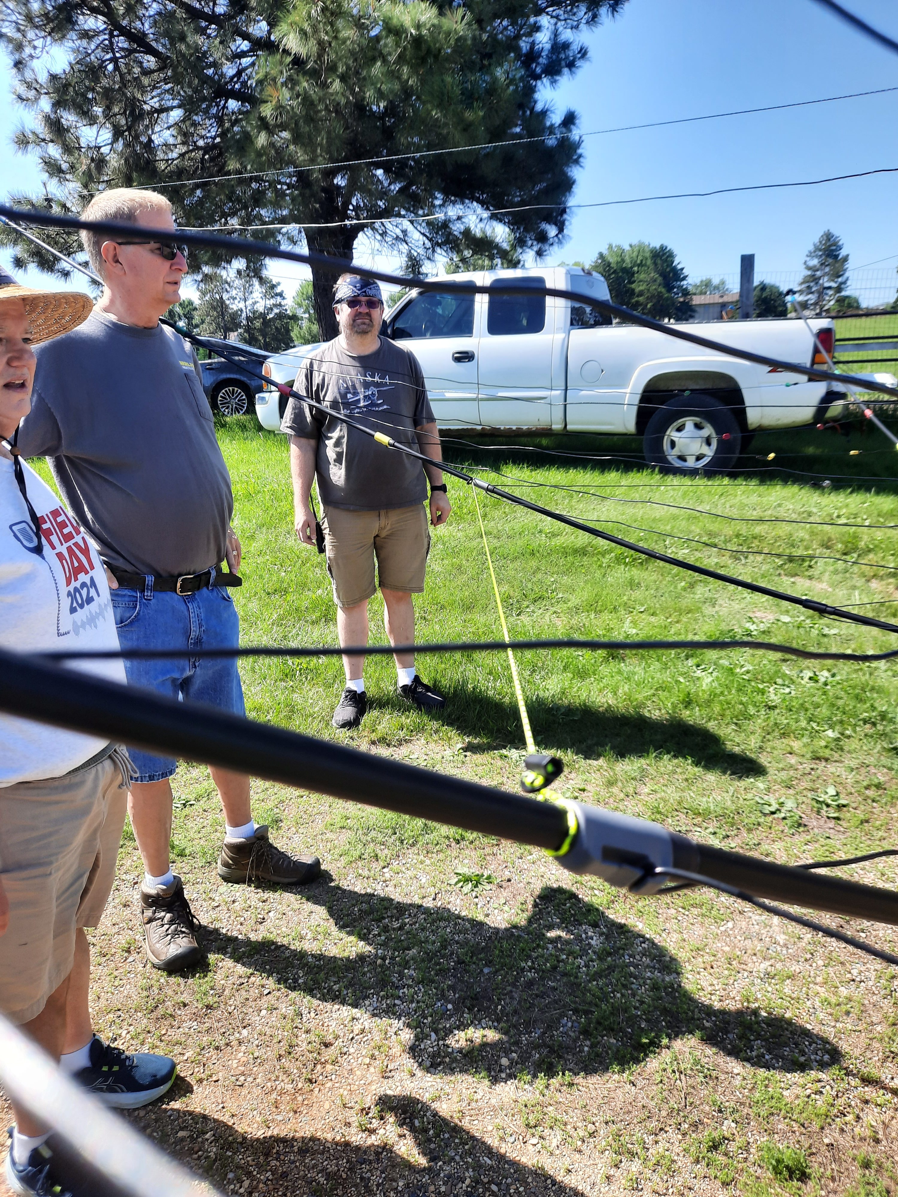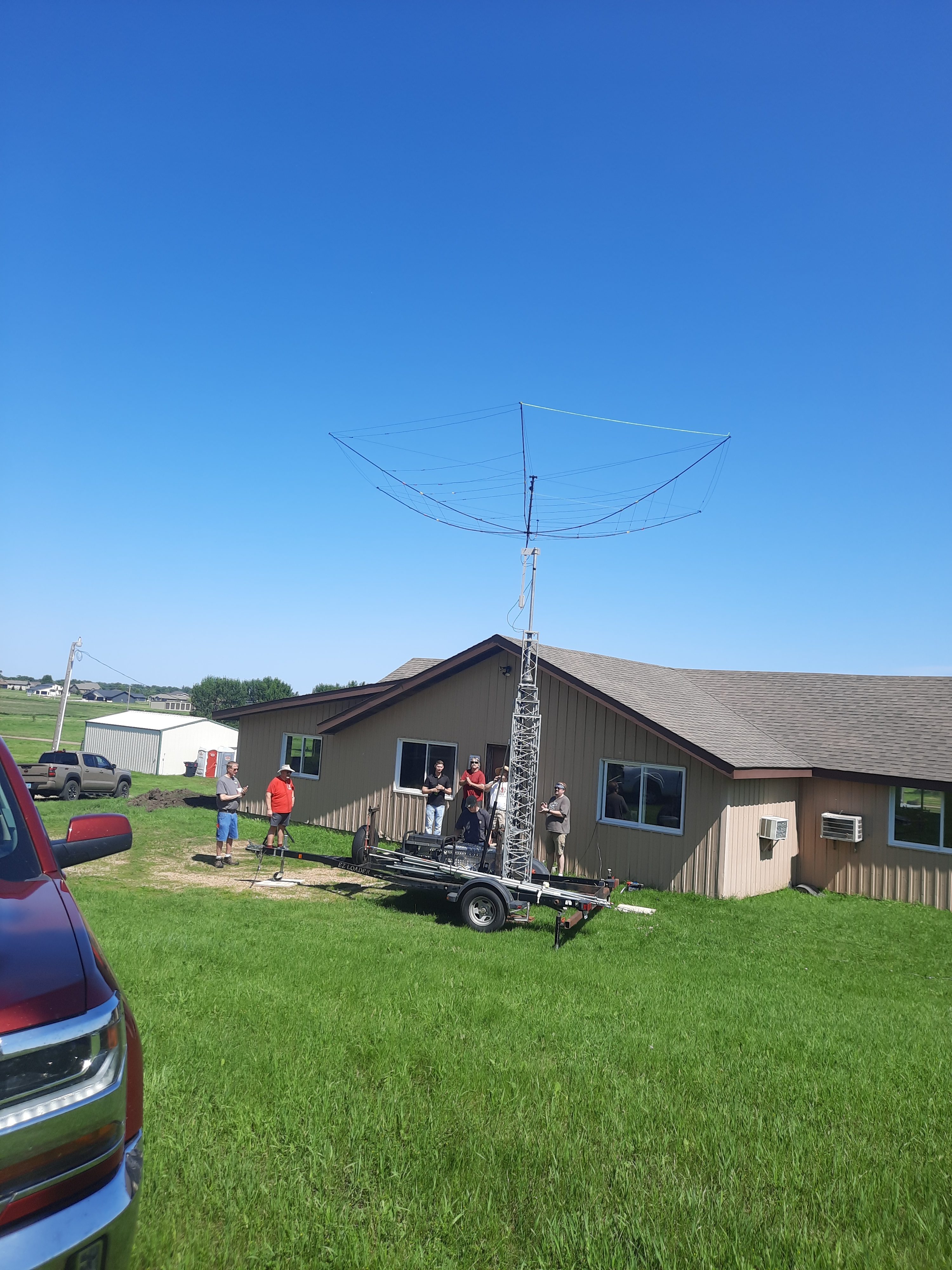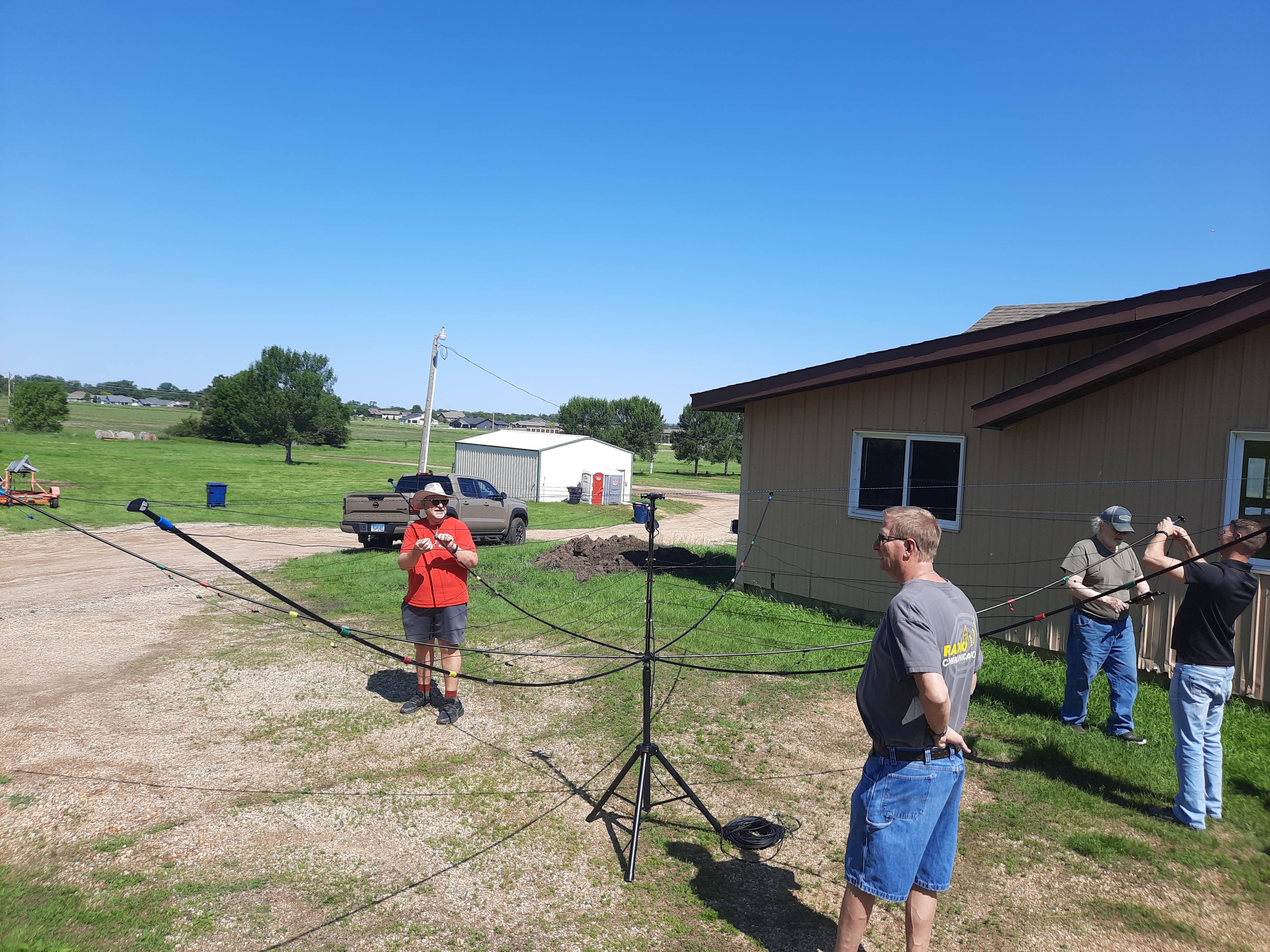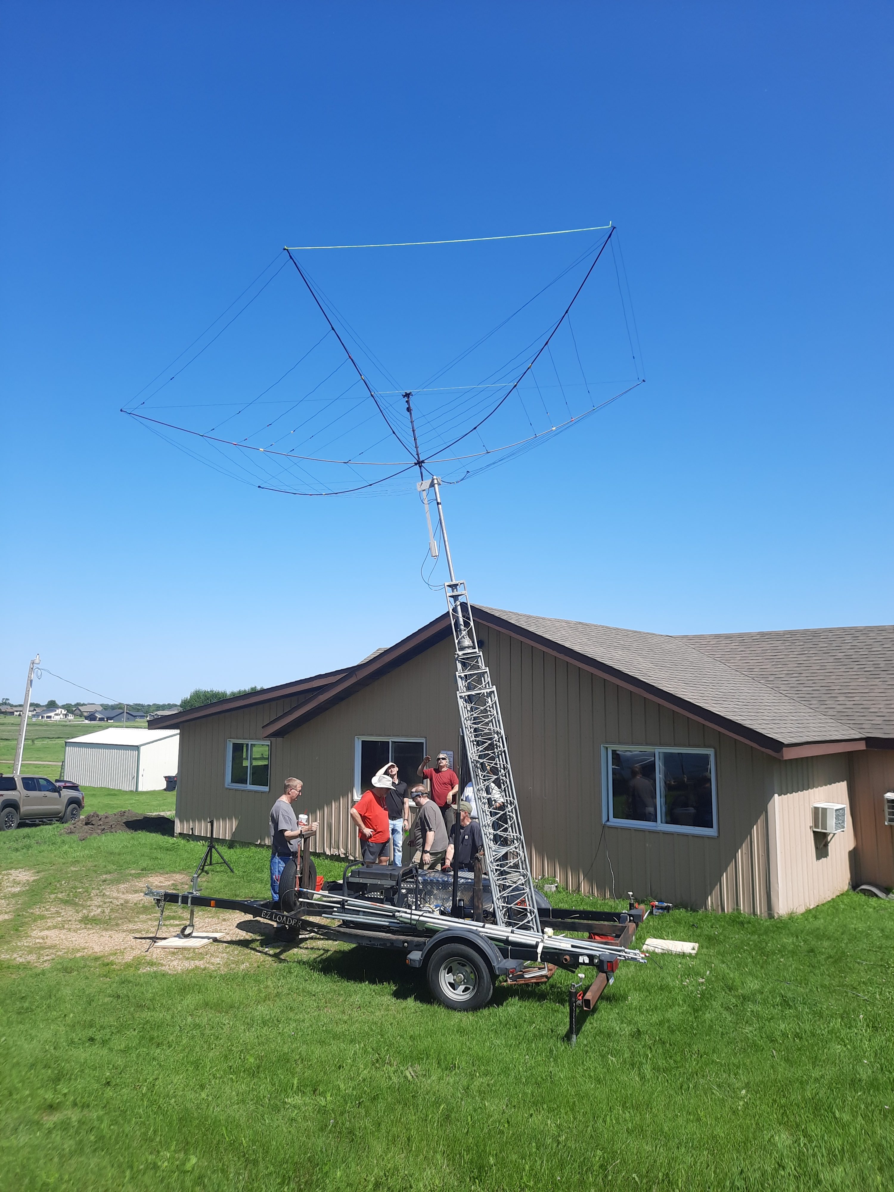 2025 Field Day Dry Run The Herzog Park / Derby Downs Field Day Dry Run crew: Kevin KB0LCR, Chuck KB0VXD, Joe N0SD, Todd N0IP, George KC0LRV, Mike K0ATY and Rich KE0EPYClose-up of hexbeam endpoint supportClose-up of hexbeam center supportAssembling the BuddiHex hexbeamAssembling the BuddiHex hexbeamPutting the elements on the hexbeam supports - Todd N0IP, Mike K0ATY, Rich KE0EPY and Scott K0SHDScott K0SHD ties off the hexbeam elements while Todd N0IP looks onHexbeam mostly assembled while Joe N0SD, Mike K0ATy and Kevin KB0LCR look onHexbeam ready to be raisedTilting the hexbeamRunning the coax to the hexbeamDry-run setup team, L-R: Chuck KB0VXD, Kevin KB0LCR, Todd N0IP, Rich KE0EPY, Eric W0YBTrailer tower and BuddiHex HexbeamBuddiHex SWR Plot - Looks great!